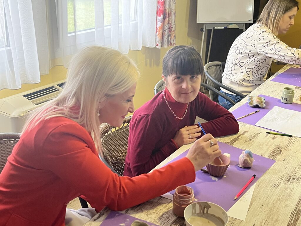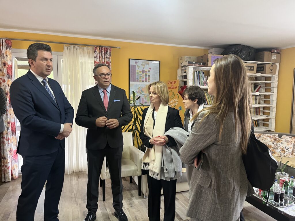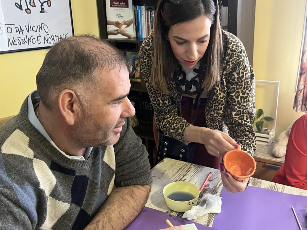 Poseta je započela u Dnevnom boravku „Sv. Sofija” u Šapcu, koji deluje u okviru Caritasa Šabac i pruža podršku osobama sa mentalnim smetnjama i intelektualnim poteškoćama. Tokom obilaska učesnici su imali priliku da se upoznaju sa radom centra i da zajedno sa korisnicima učestvuju u krojačkoj radionici, jednoj od aktivnosti koja doprinosi njihovom osnaživanju i socijalnoj inkluziji.